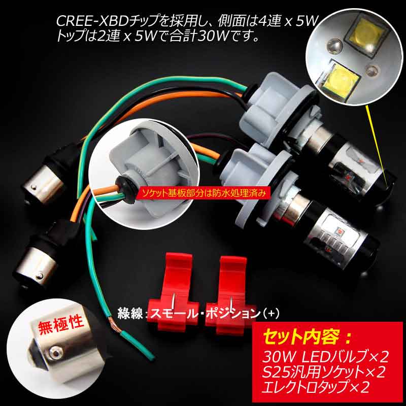 S25 ツインカラー ウインカーポジションキット ホワイト/オレンジ ダブル球 LEDバルブ 30W CREE XBD 6連SMD ダブルソケット ウイポジキット オレンジ優先