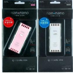 パールイオン発生機 nan・nano(ナン・ナノ) 製品仕様 ■入力電圧 DC5V ■消費電力 0.5W ■プラスイオン濃度 15×105ions/cm3 ■マイナスイオン濃度 25×105ions/cm3 ■連続使用時間 9000時間 ■本体サイズ 84(L)×32(W)×38(H)mm ■質量 58g(本体のみ) ■付属品 コードリール式接続USBケーブル(ケーブル長 最大 約730mm)No.1825 パールイオン発生機 nan・nano(ナン・ナノ) Pink パールイオン発生機 nan・nano(ナン・ナノ) 特徴 ●USB電源を採用省電力で、いろいろな場所で気軽に使えます。