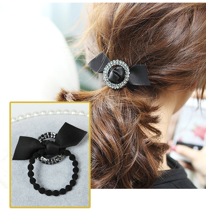 ビジューが並んだサークルの中心にリボンが結ばれていて ヘアを綺麗でかわいらしいものに魅せてくれます。