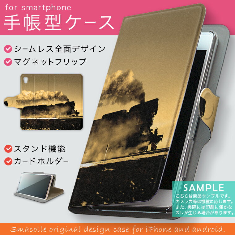 手帳型 docomo softbank au 全機種対応 あり スマホ カバー 手帳型スマホ レザー ケース 手帳タイプ フリップ ダイアリー 二つ折り 革 013217 乗り物 汽車 列車