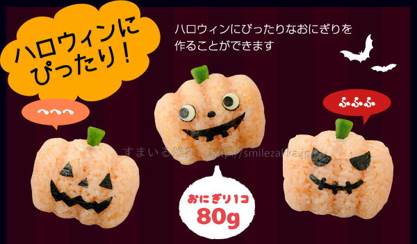 おにぎりでハロウィンを楽しもう おにぎりでHalloween! ハロウィンに大活躍のかぼちゃ型おにぎりを作ることができます。